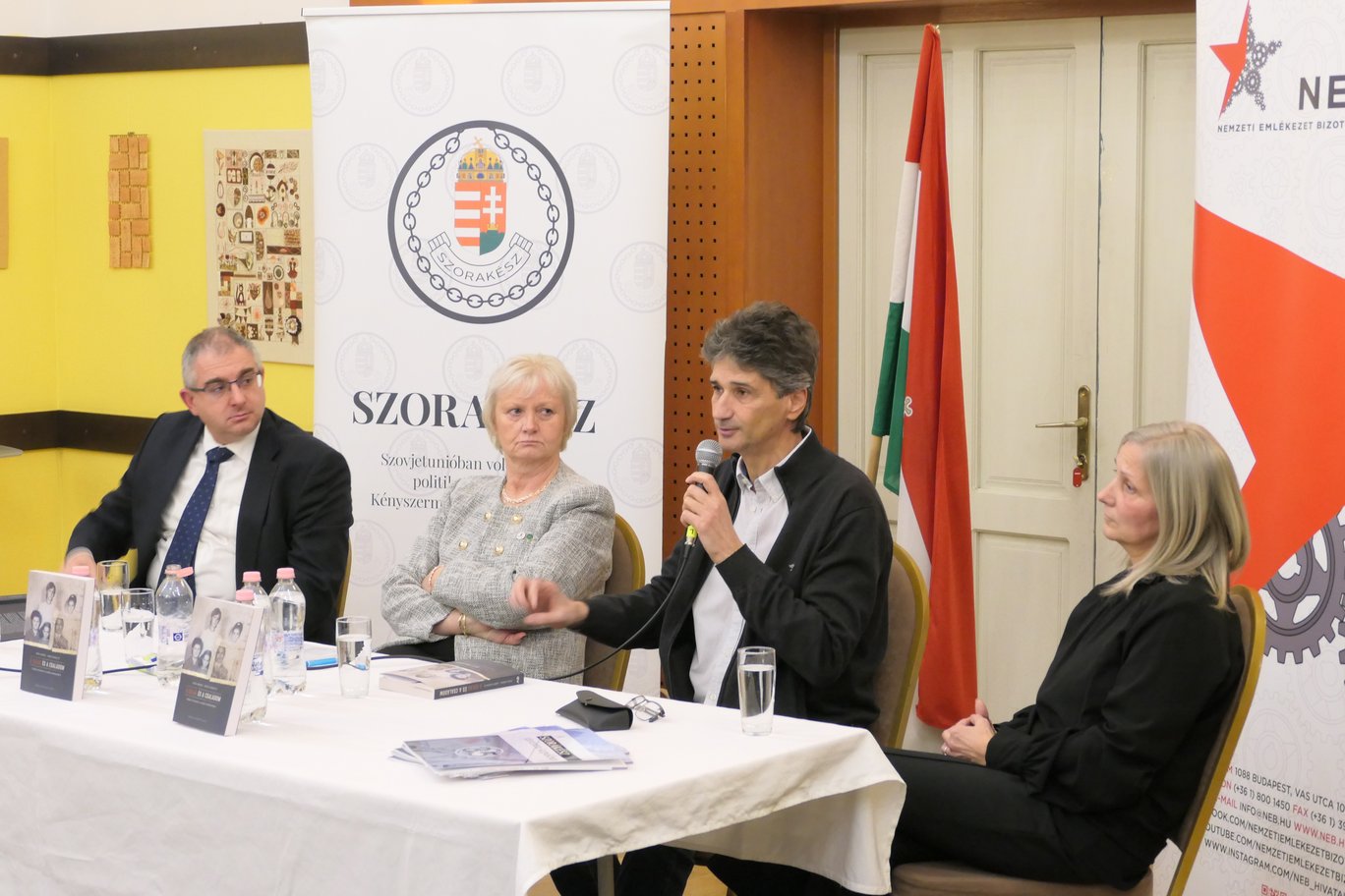 November 19-én, szerdán a közelgő nemzeti emléknap – november 25. a Szovjetunióba hurcolt magyar politikai rabok és kényszermunkások emléknapja – alkalmából méltó és felemelő rendezvénysorozattal tisztelegtünk az áldozatok emléke előtt. A SZORAKÉSZ és a Magyar Vidék Országos 56-os Szervezet közös szervezésében először a Veszprémben található emlékművünk előtt emlékeztünk és emlékeztettünk. Emlékbeszédet mondott Porga Gyula úr, Veszprém polgármestere és Ovádi Péter úr, országgyűlési képviselő. A beszédeket követően elhelyeztük az emlékezés koszorúit és fejet hajtottunk, azelőtt a több, mint 800.000 ártatlanul elhurcolt honfitársunk előtt, akiket a Gulag rabtelepeire hurcoltak a II. világháborút követően. Balatonfüreden, a Zeneiskola falán található emléktáblánknál róttuk le tiszteletünket az áldozatok előtt. Dr. Kontrát Károly országgyűlési képviselő úr emlékbeszéde után itt is elhelyeztük a emlékezés virágait és főhajtással tisztelegtünk az áldozatok előtt. A Nemzeti Emlékezet Bizottságát Veszprémben Dergán Ádám,a NEB Hivatala főigazgató helyettese, Balatonfüreden pedig Dr. Soós Viktor Attila úr, a Nemzeti Emlékezet Bizottsága tagja képviselte. Balatonarácson, a Népházban pedig késő délután kerekasztal beszélgetéssel egybekötött könyvbemutatót tartottunk. Beszélgető partnereim voltak, akikkel a Gulag és a családom c. könyvet mutattuk be: Dr. Soós Viktor Attila, a NEB tagja, aki méltatta a könyvet és az alkotókat, valamint Dr. Murai András és Németh Brigitta szerzőpáros, a könyv írói. Az érdekfeszítő beszélgetés után jó hangulatú dedikálás és vendéglátás zárta az emlékezés napját. A rendezvényeinken részt vettek szervezeteink tagjai, valamint számos politikai üldözötteket tömörítő szervezet elnöke is. A tartalmas rendezvénysorozat méltó emlékezés volt és tisztelgés, szüleink, nagyszüleink előtt!